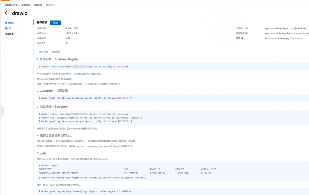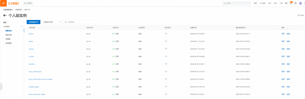 上一步处理完成后,回到阿里云镜像服务,可以看到仓库中已经有相关镜像了。