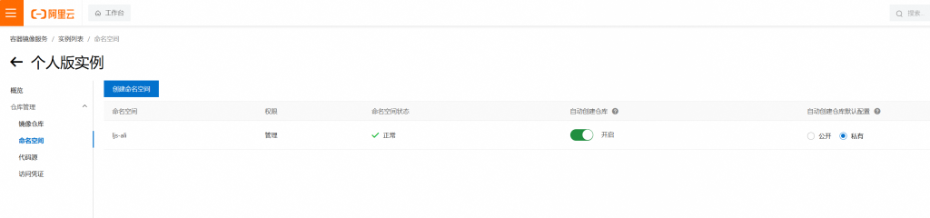 登录阿里云容器镜像服务。地址:https://cr.console.aliyun.com